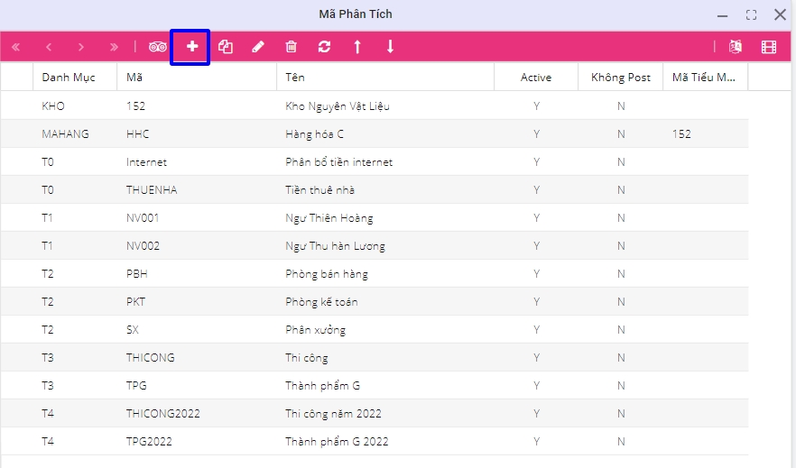 Trường hợp 1: Gói TT200/2014-BTC đã định nghĩa sẵn bộ phận sử dụng danh mục phân tích T2 rồi, người dùng cần thêm mã phân tích cho từng bộ phận của doanh nghiệp.