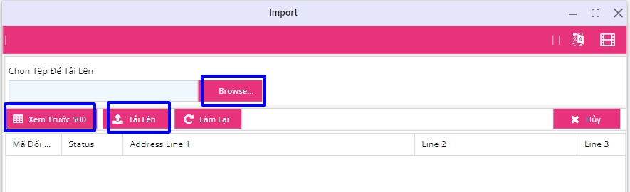 Người dùng tải file lên, sau đó xem trước lại đã chính xác chưa, nếu chính xác rồi, bấm nút tải lên. Như vậy, phần mềm sẽ cập nhật bảng mới nhất vào phần mềm.