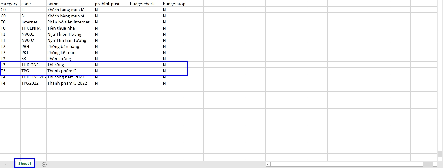 Trong file này, người dùng đang cần sử dụng đối tượng tập hợp chi phí T3, bỏ các dòng C0,T0,T1,T2,T4. Lưu ý: Sheet dữ liệu phải là sheet đầu tiên và thứ tự các cột không thay đổi. Người dùng có thể thêm các sheet ở phía sau, dùng công thức cho sheet dữ liệu đầu tiên. Sau khi nhập liệu đầy đủ dữ liệu, người dùng Inport