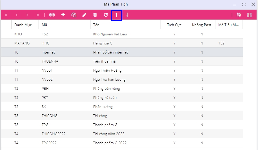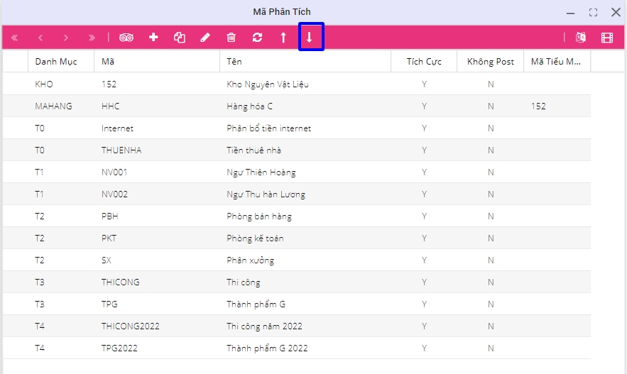 Người dùng vào Menu > Thiết lập chung > Mã phân tích > Export
