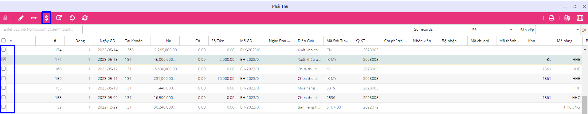 Sau đó, tích chọn vào mục cần thu tiền ở ô 1 và bấm nút