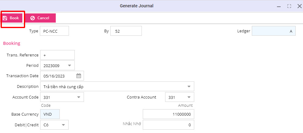 Sổ: Sổ chính (hoặc chọn sổ theo nhu cầu người nhập)