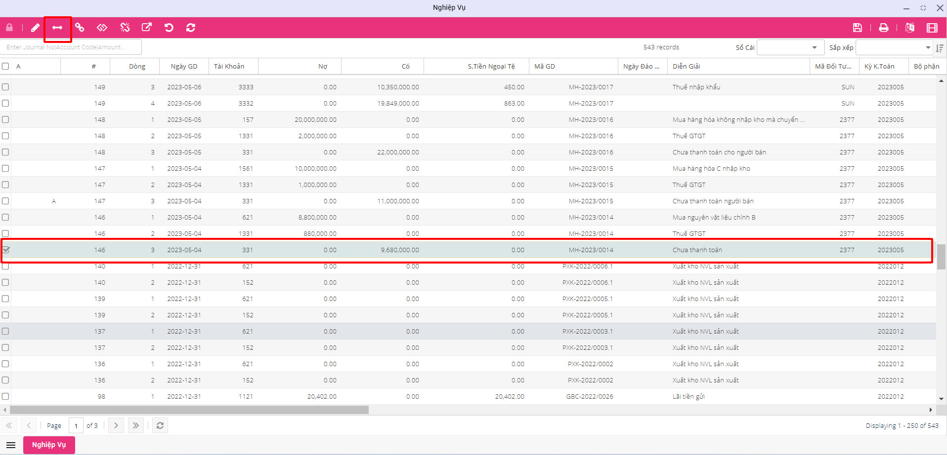 ⇒ Nhấn nút X để đóng giao diện hạch toán lại.