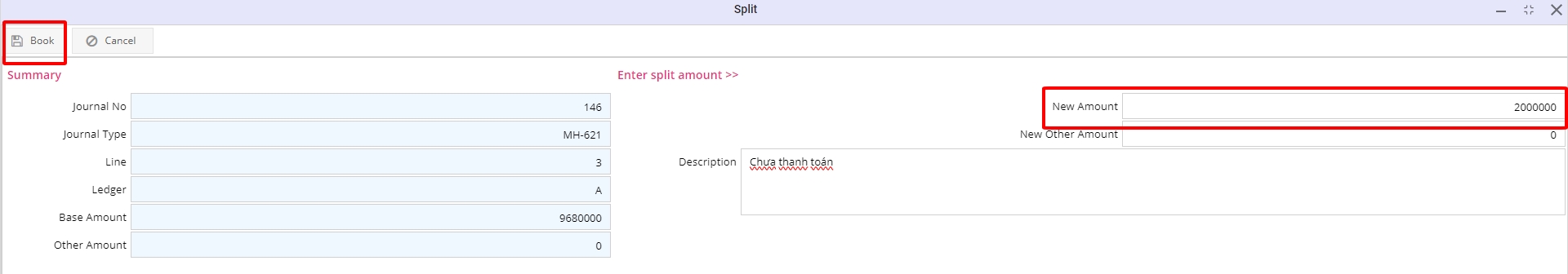 New amount: Số tiền cần muốn tách