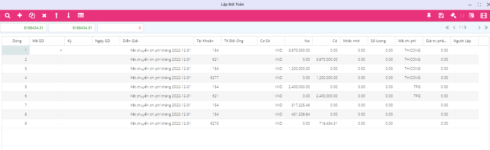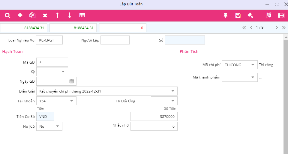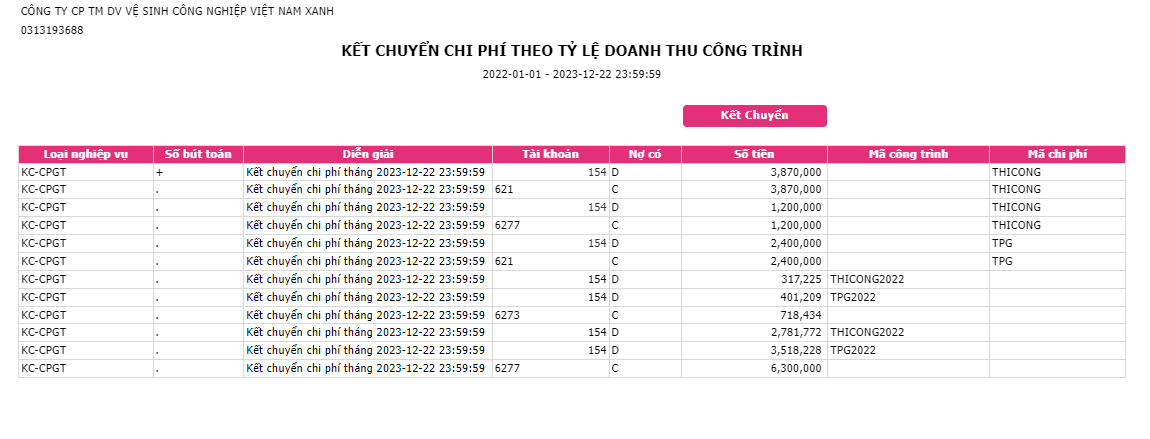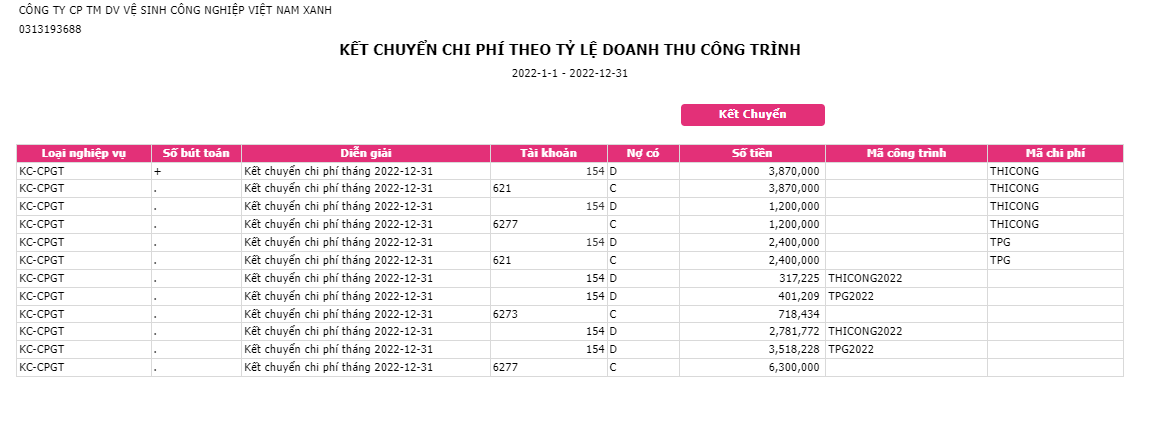 Kết chuyển chi phí theo công trình