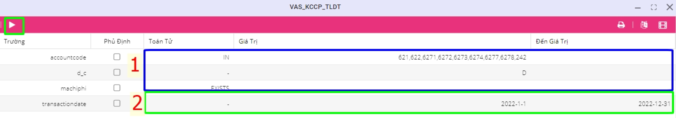 Dòng machiphi: Chỉ lấy những giao dịch tồn tại mã chi phí từ sổ nhật ký chung.