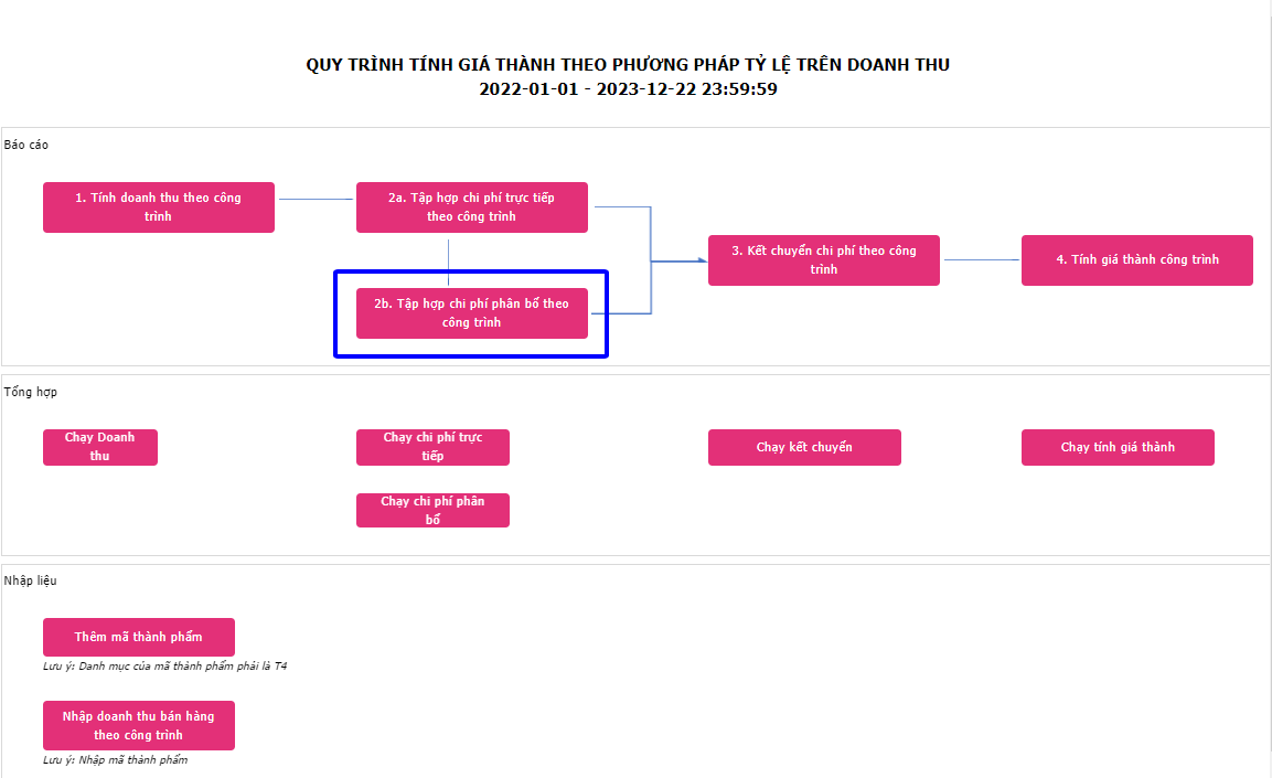 Người dùng bấm vào ô số 2b. Tập hợp chi phí phân bổ theo công trình