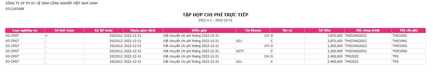 Dòng accountcode: Chỉ lấy những dòng có số tài khoản TK 621, 622, 6271, 6272, 6273, 6274, 6277, ... từ sổ nhật ký chung.