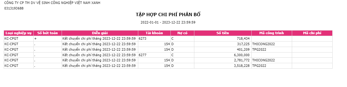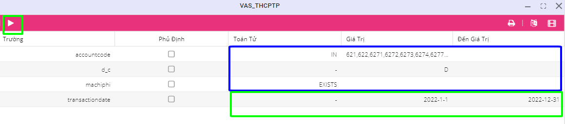 Dòng machiphi: Chỉ lấy những giao dịch tồn tại mã chi phí từ sổ nhật ký chung.